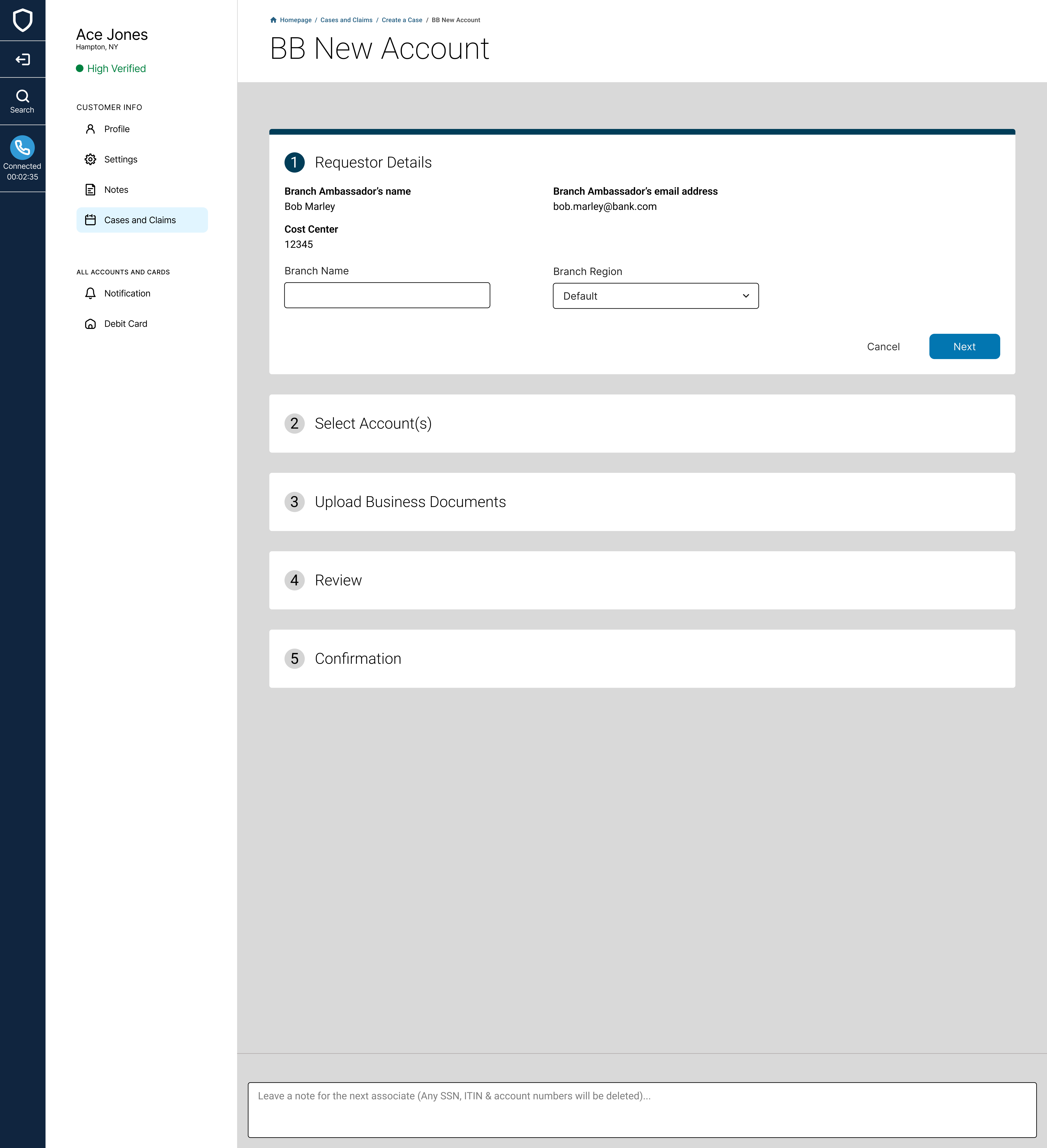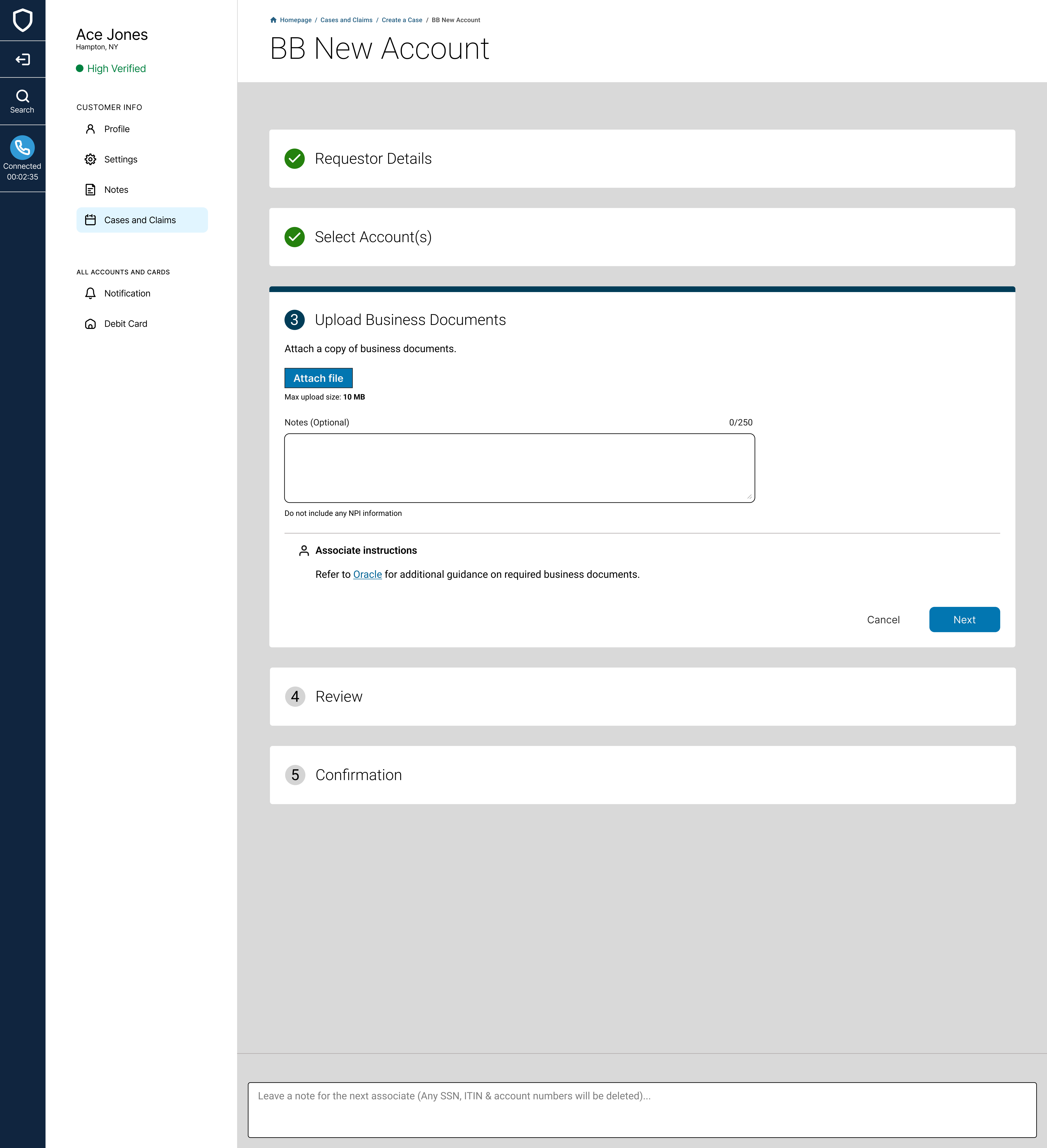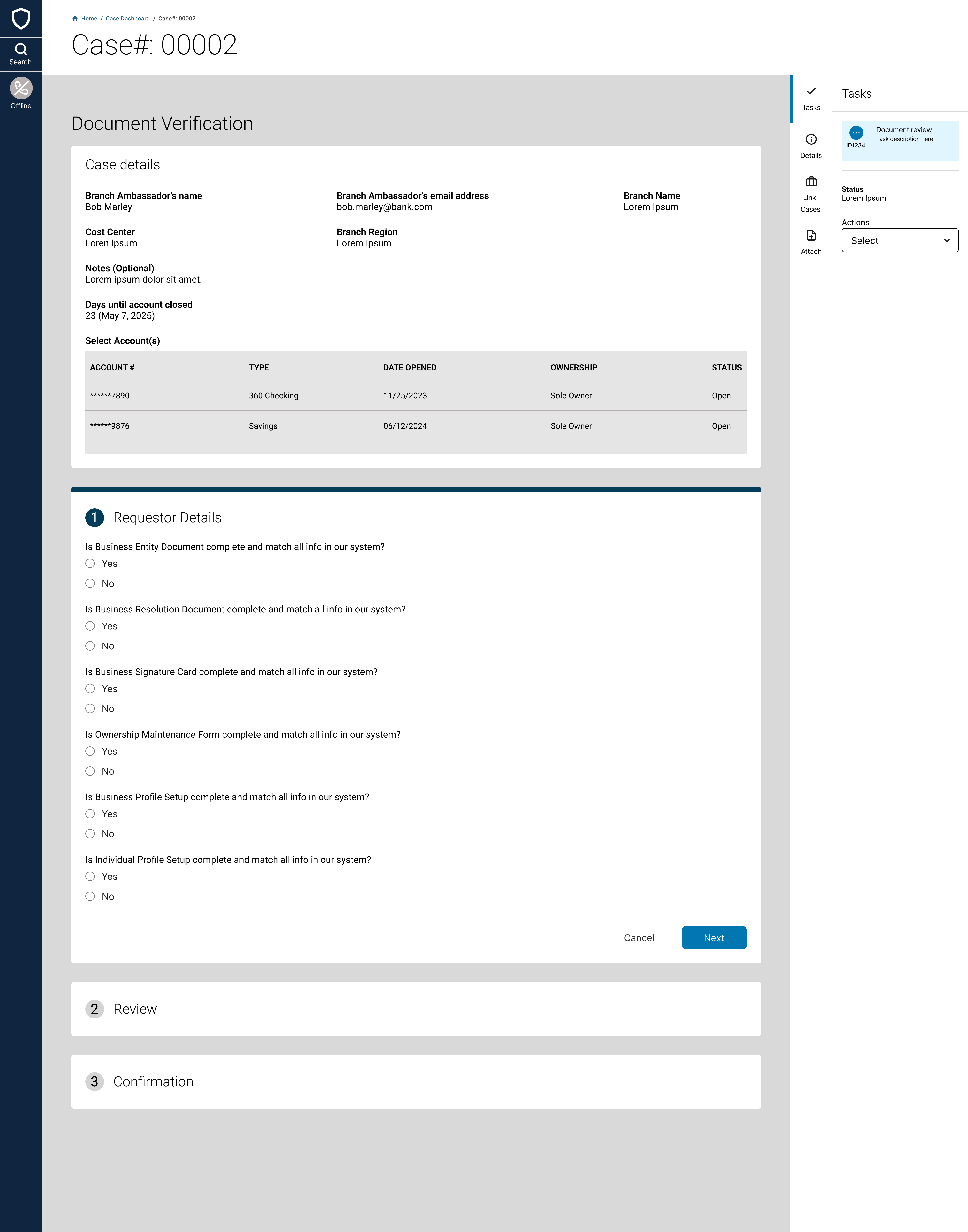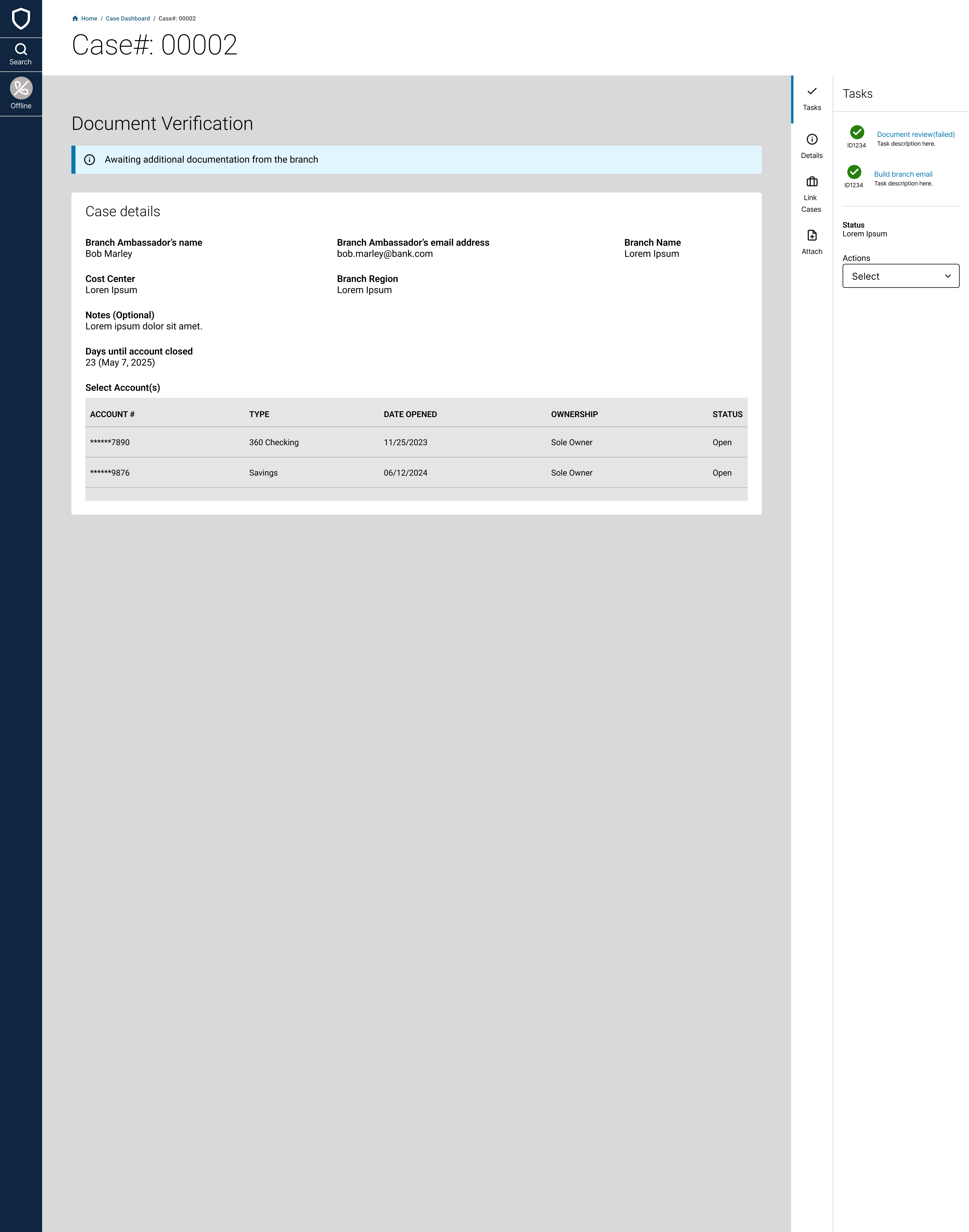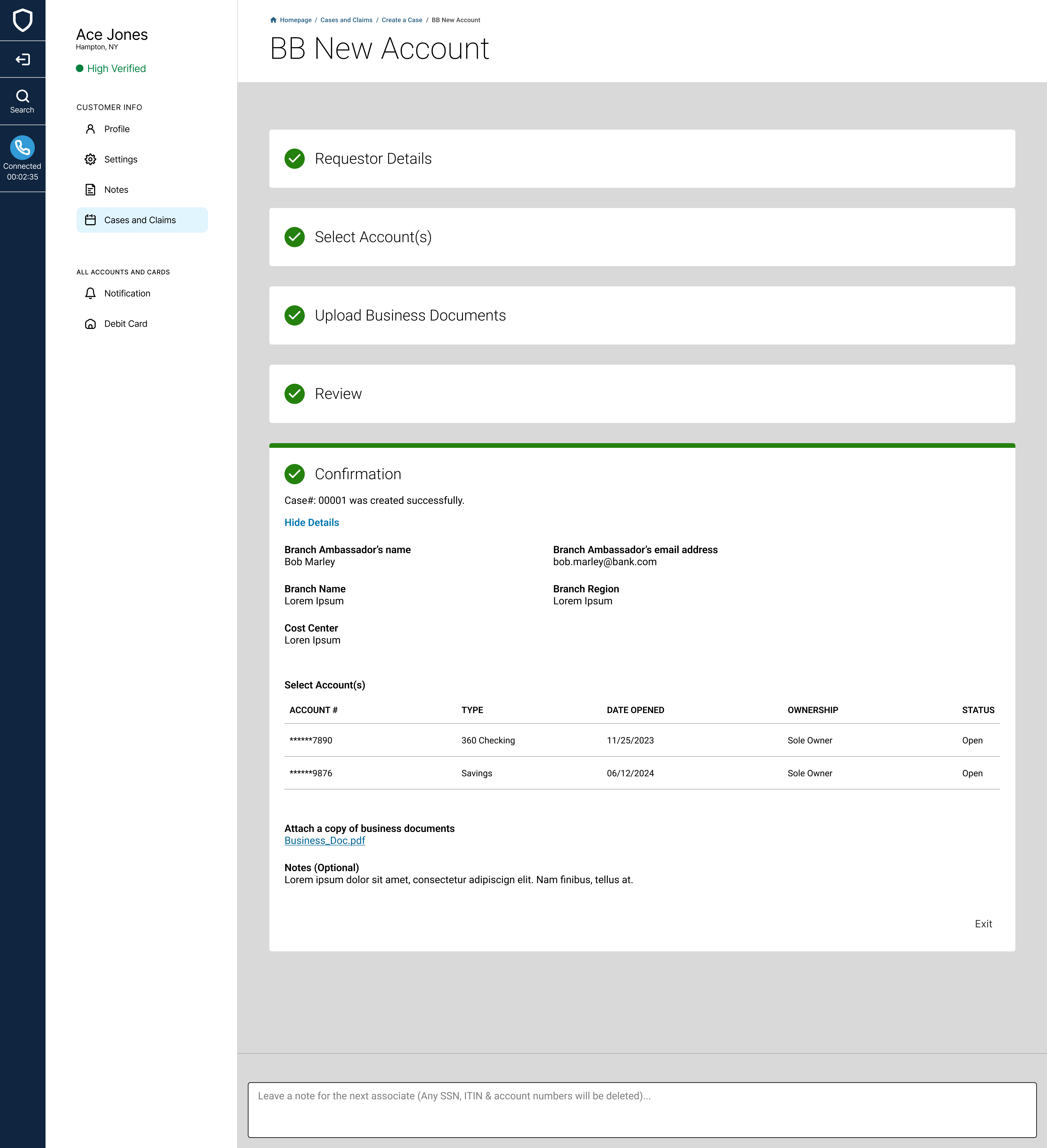 The BBNewAccount Migration was a high-impact UX initiative aimed at improving how Ironcrest Bank business customers provide required documentation when opening specialty deposit accounts. Previously reliant on a fragile third-party tool (TRIPS), the process suffered from inefficiencies, compliance risk, and limited transparency between Branch Ambassadors, CAR Associates, and business customers.