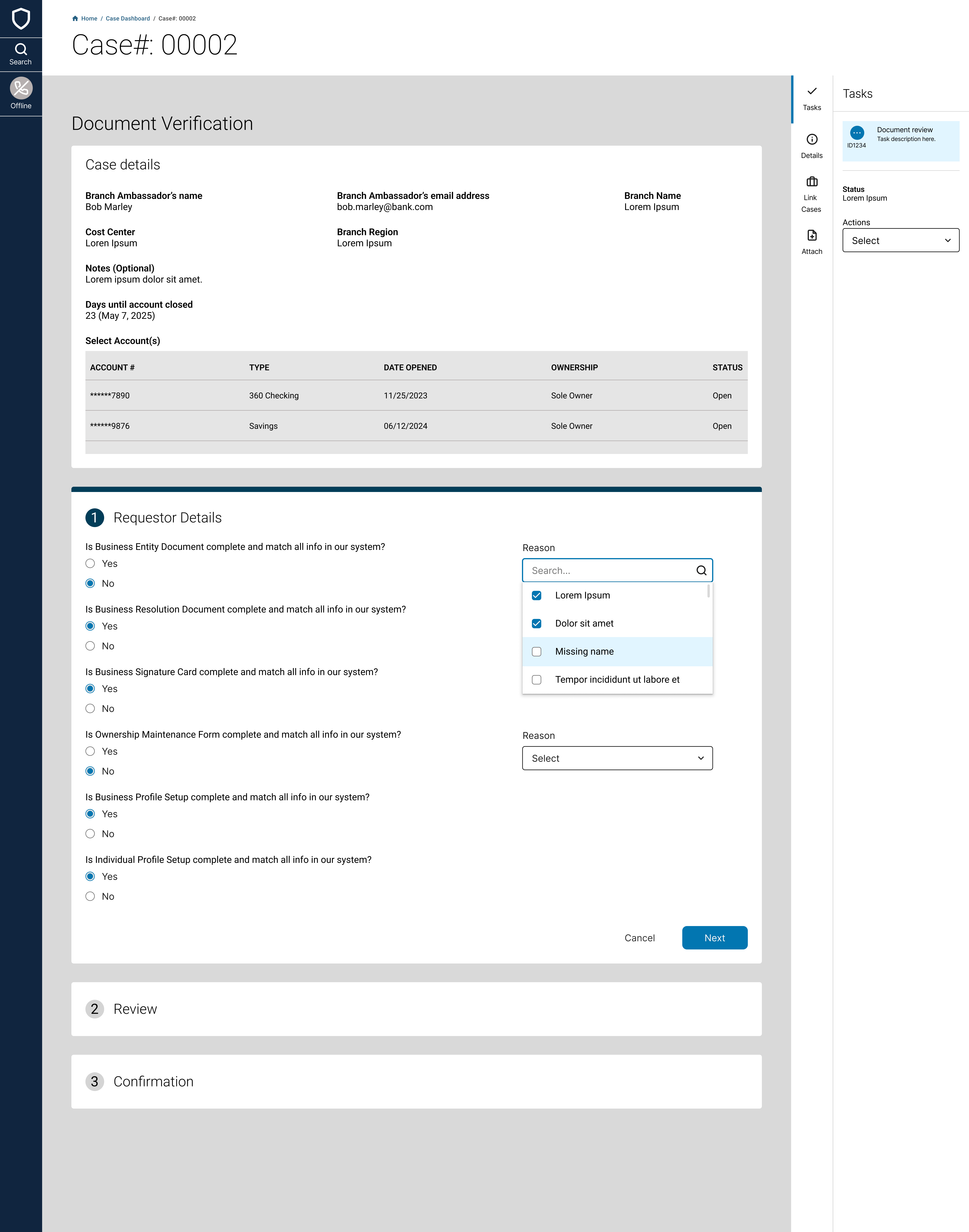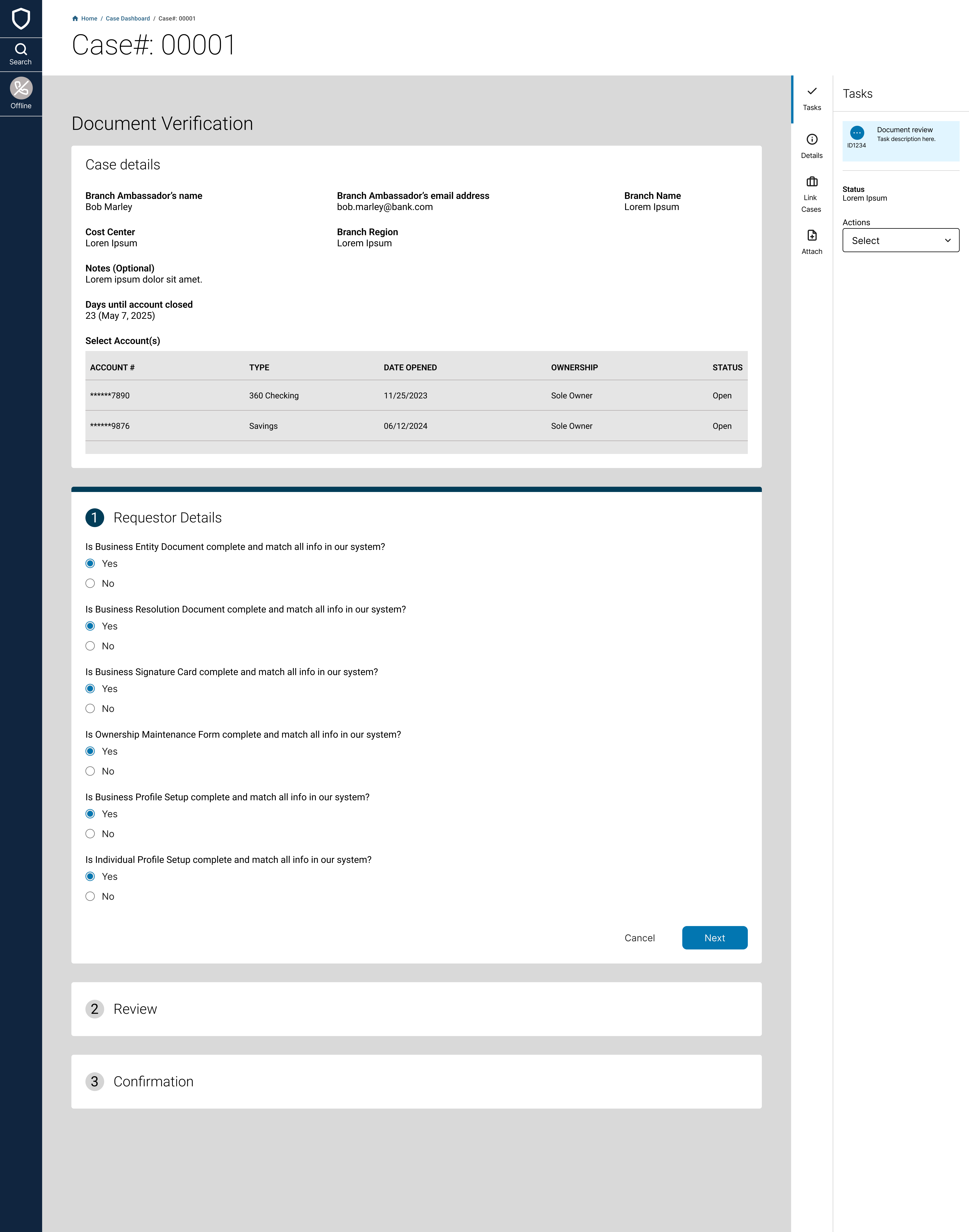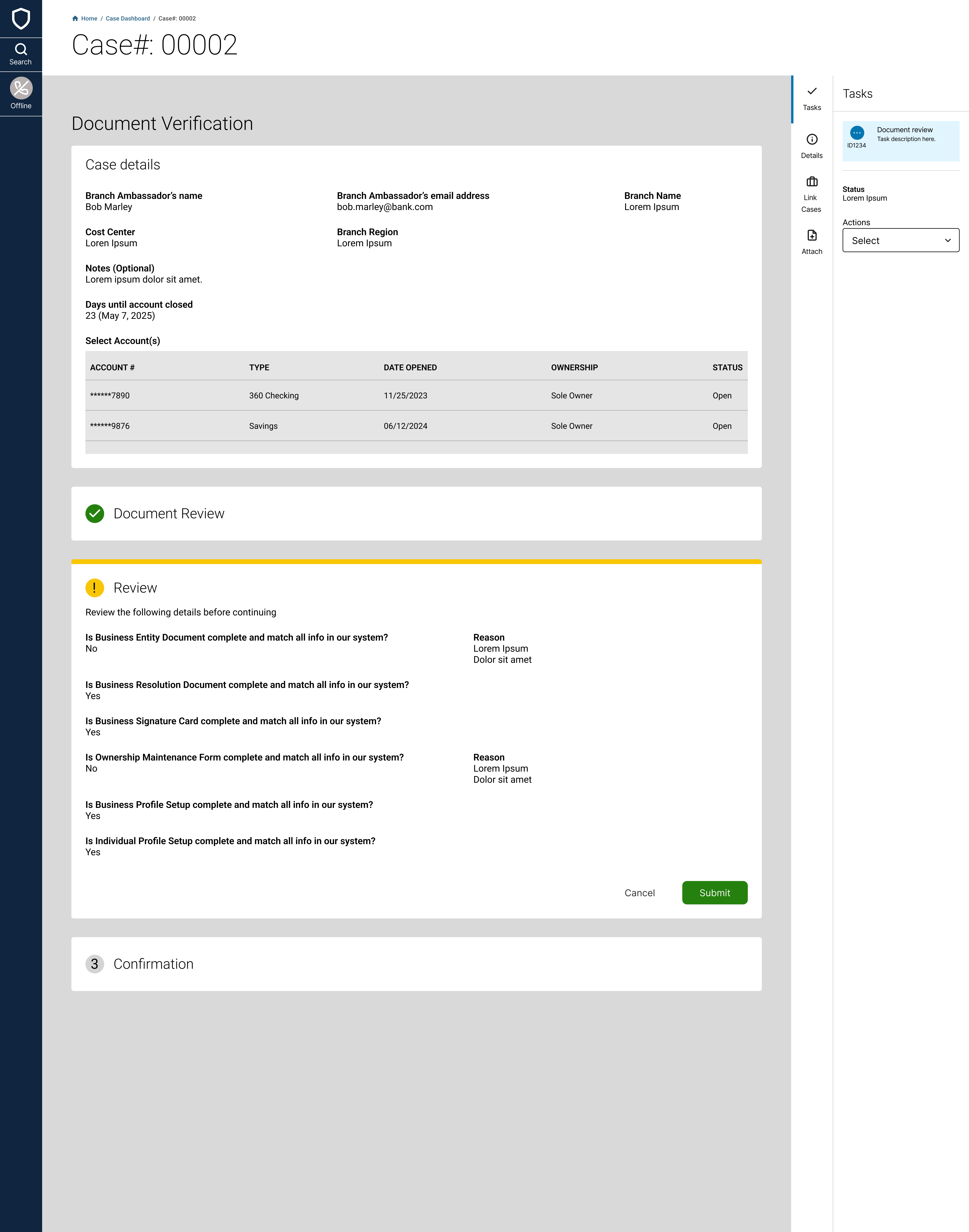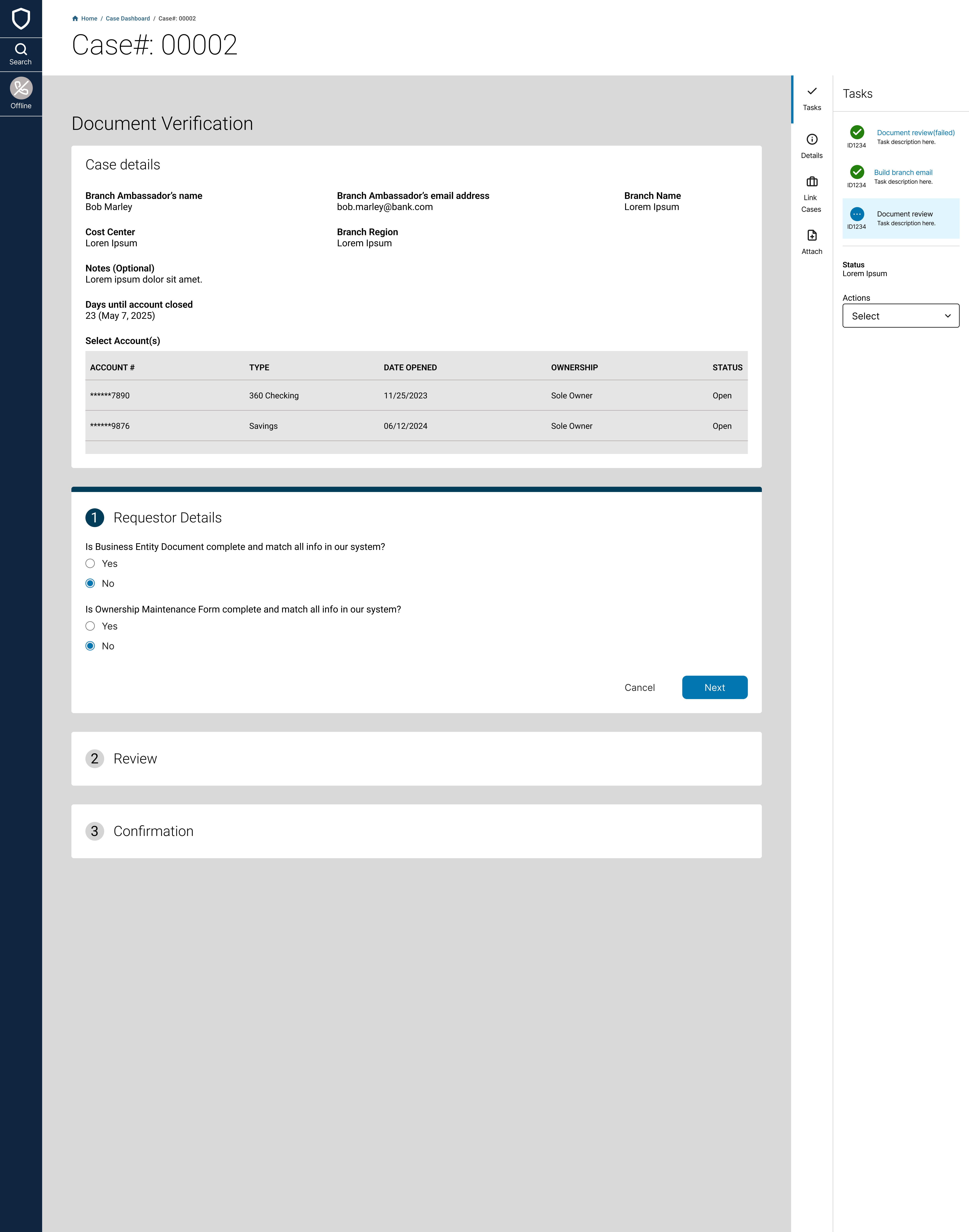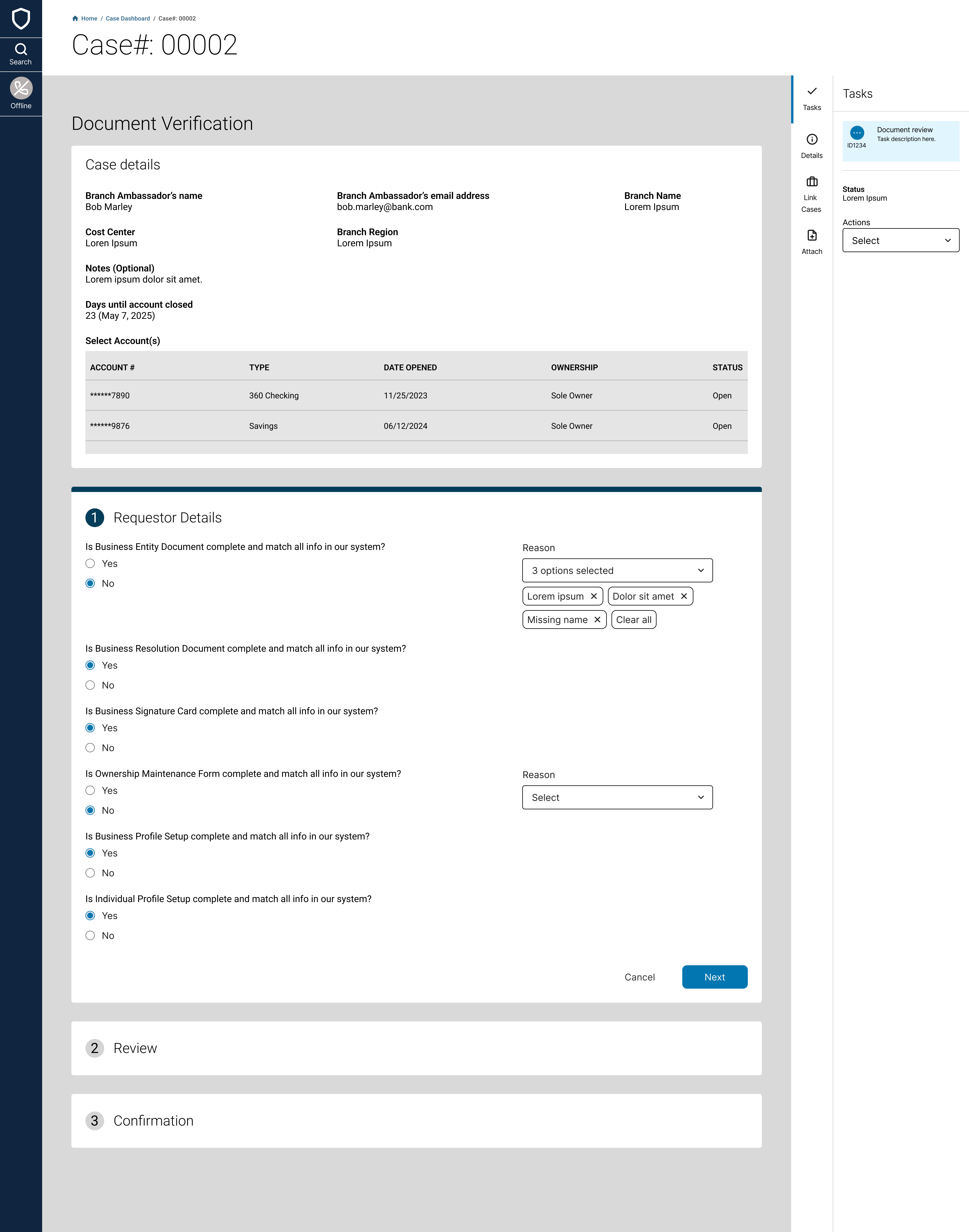 The BBNewAccount Migration was a high-impact UX initiative aimed at improving how Ironcrest Bank business customers provide required documentation when opening specialty deposit accounts. Previously reliant on a fragile third-party tool (TRIPS), the process suffered from inefficiencies, compliance risk, and limited transparency between Branch Ambassadors, CAR Associates, and business customers.